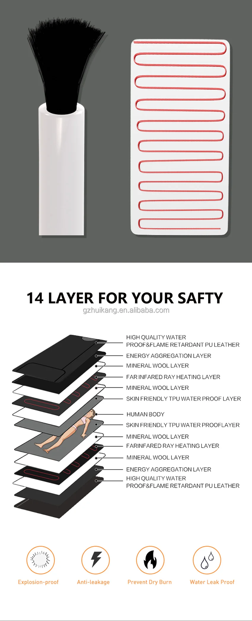 • Low-EMF Carbon Fiber Heating Wire ensures even heat distribution while minimizing electromagnetic exposure.