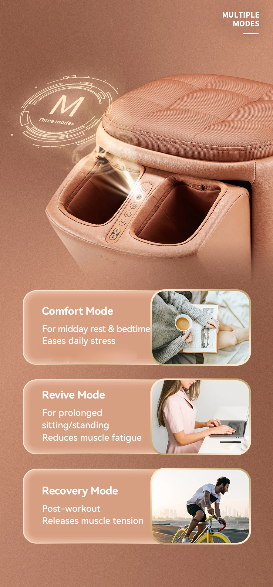 A Professional Reflexology Smart Leg & Foot Massage Stool with Air Compression Mode, Infrared Physiotherapy is an advanced electric massage device designed to provide a full‑featured therapeutic massage experience for your feet and often your lower legs, combining reflexology‑inspired techniques with modern technology like air compression and infrared heat.